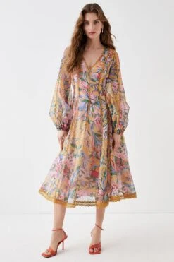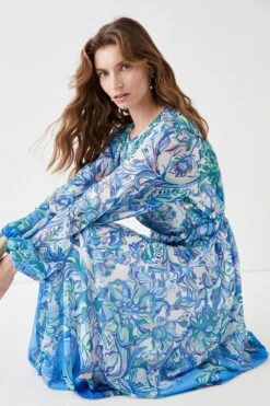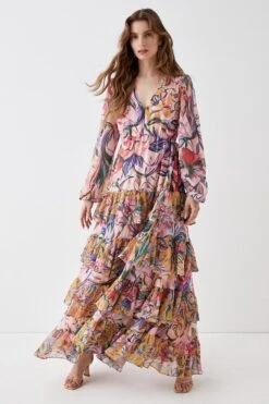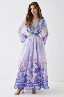 Coast Alexandra Farmer Ruffle Shoulder Volume Sleeve Maxi Dress