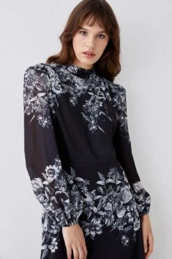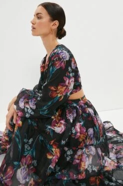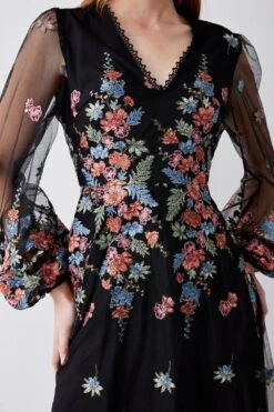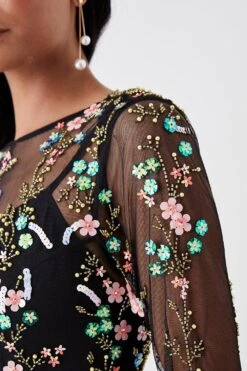 Coast Petite Hand Embellished Sequin Floral Panelled Maxi Dress