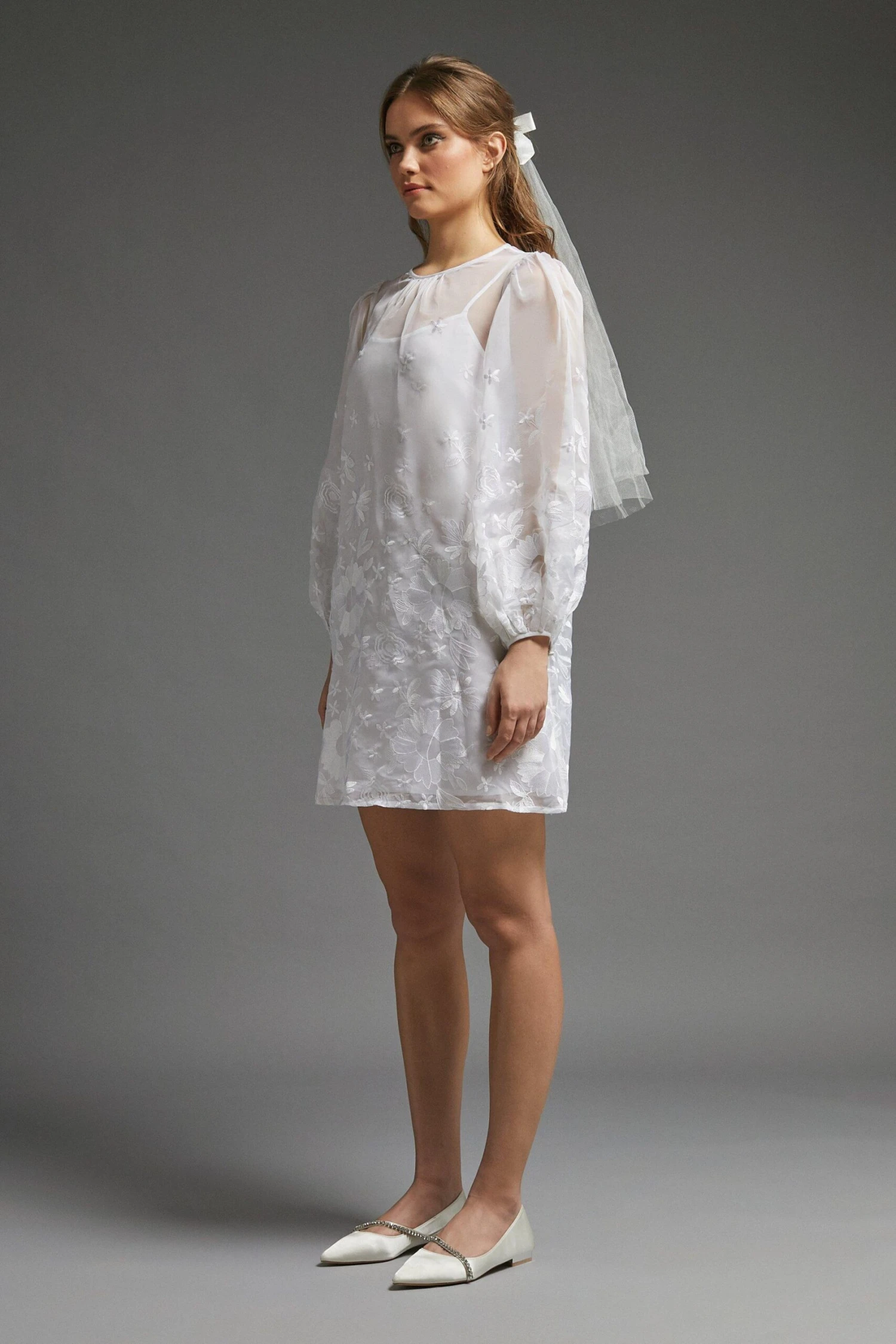 Coast has travelled through the eras to find your ultimate wedding look. Part of our Bridal Through the Eras collection, this wedding dress is beautifully inspired by the 1960s. Playful in shape and style, this Modish piece adds a little fun to your special day with its billowing sleeves, sheer tulle, floral embroidery and short hem.