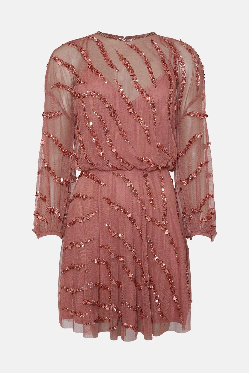 Style: Hand Embellished Mini Dress.