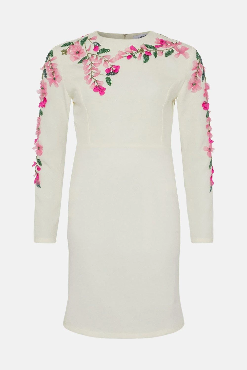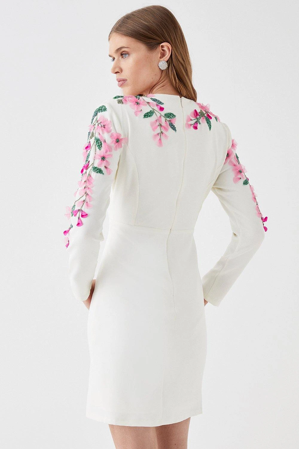 Style: Hand Stitched 3d Floral Long Sleeve Mini Dress.