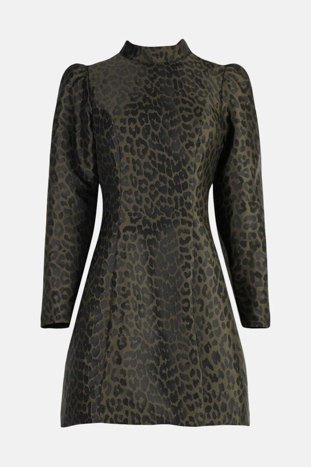 One can never have too many leopard print pieces. Our mini dress shows off an elegant high neck, slightly puffed sleeves, a seductive open back for added appeal and classic animal print. Team it with your favourite heels.