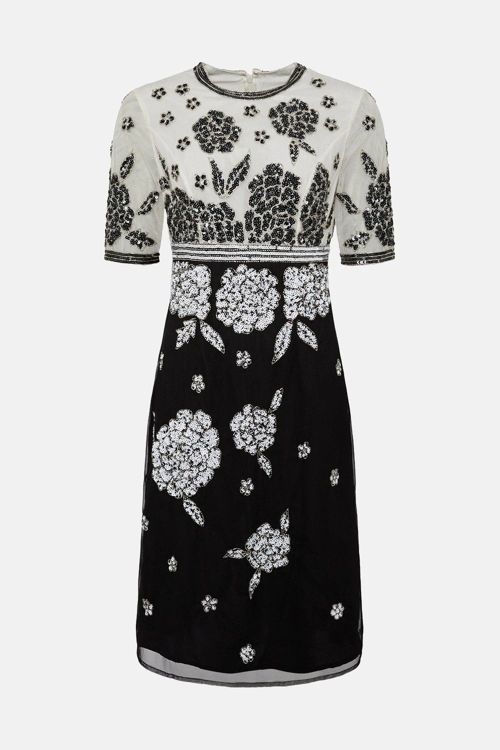 Style: Lisa Tan Floral Hand Embellished Mini Dress.