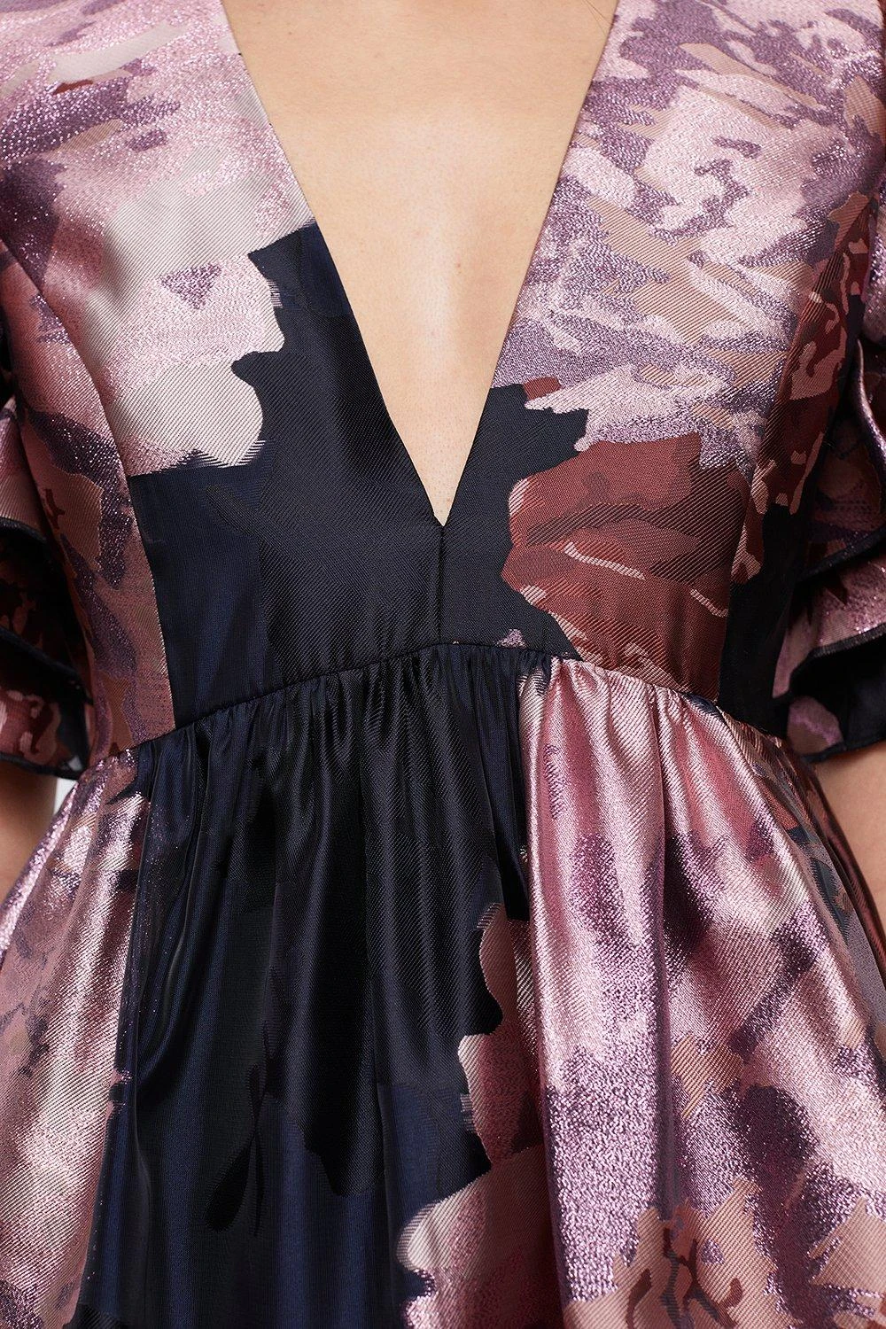 Style: Mega Ruffle Premium Jacquard Midi Dress.