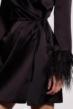 A true statement piece, this tiered mini dress ensures maximum impact. Accentuated with a contrasting ribbon belt and a deep V neckline, it provides the party-ready credentials for your evening soirée.