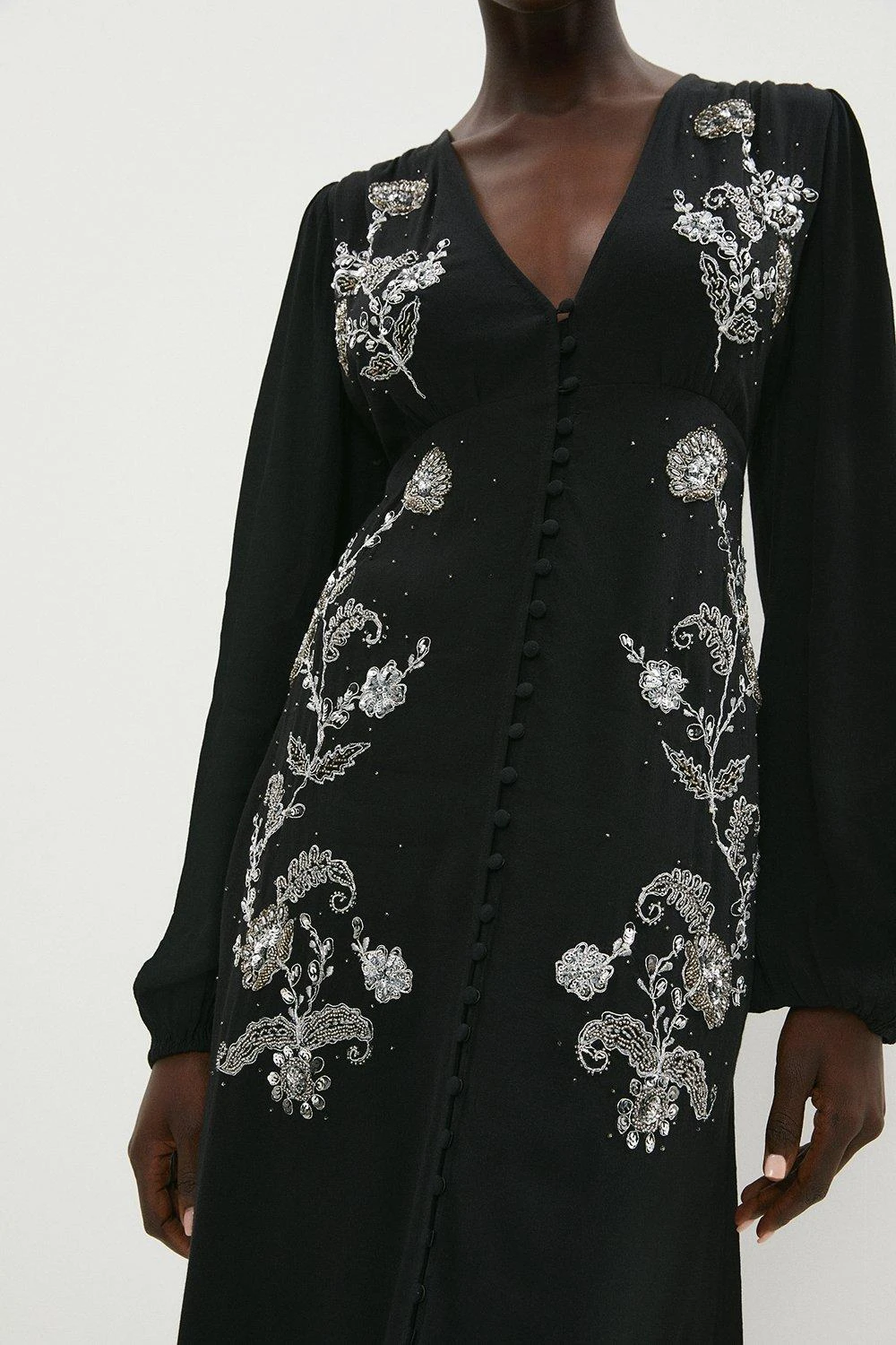 Style: Mirror Beadwork Viscose Button Through Dress.