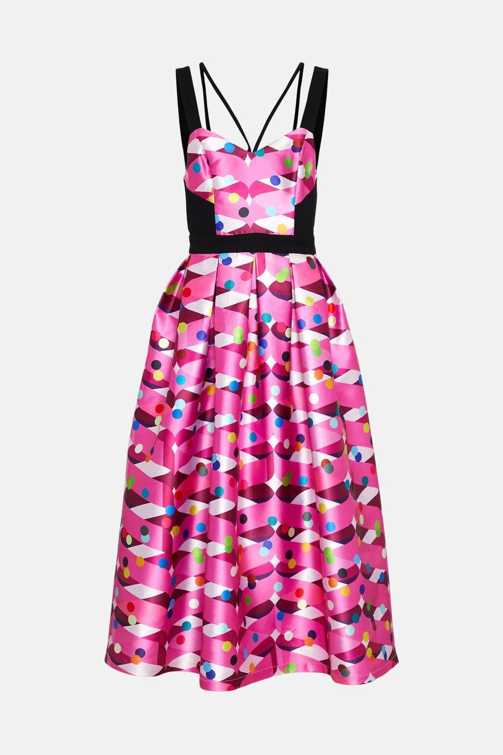Introduce a dose of excitement to new-season dressing. Beautifully printed with Nick Grindrod’s signature abstract forms, this piece offers elevated, playful take on occasionwear. Crafted out of a premium fabrication, the piece features a corsetry-bodice, nipped-in waist and flared midi skirt.