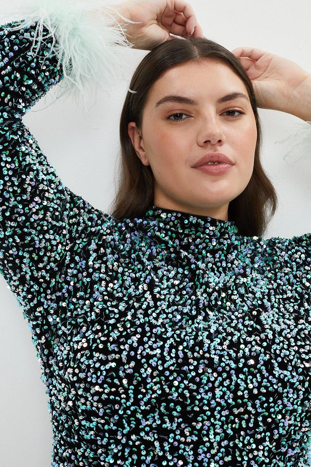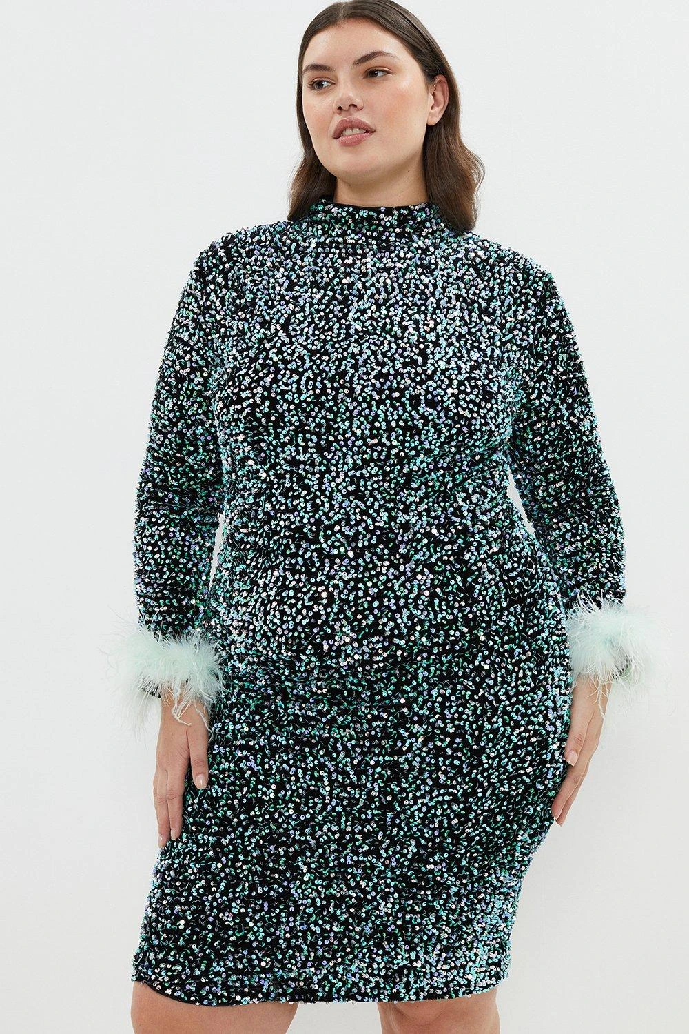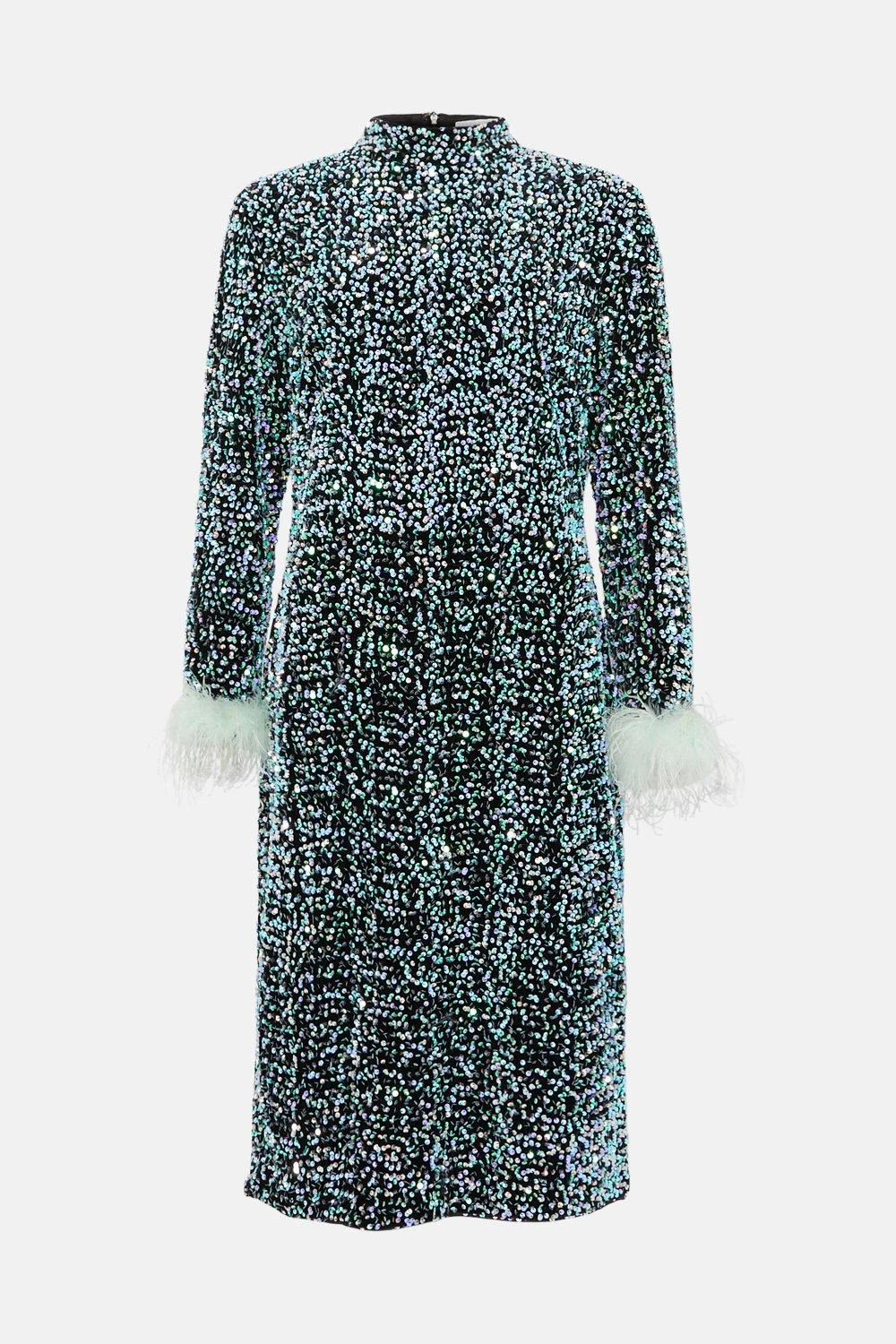 Coast Plus Sequin Midi Dress With Feather Cuff