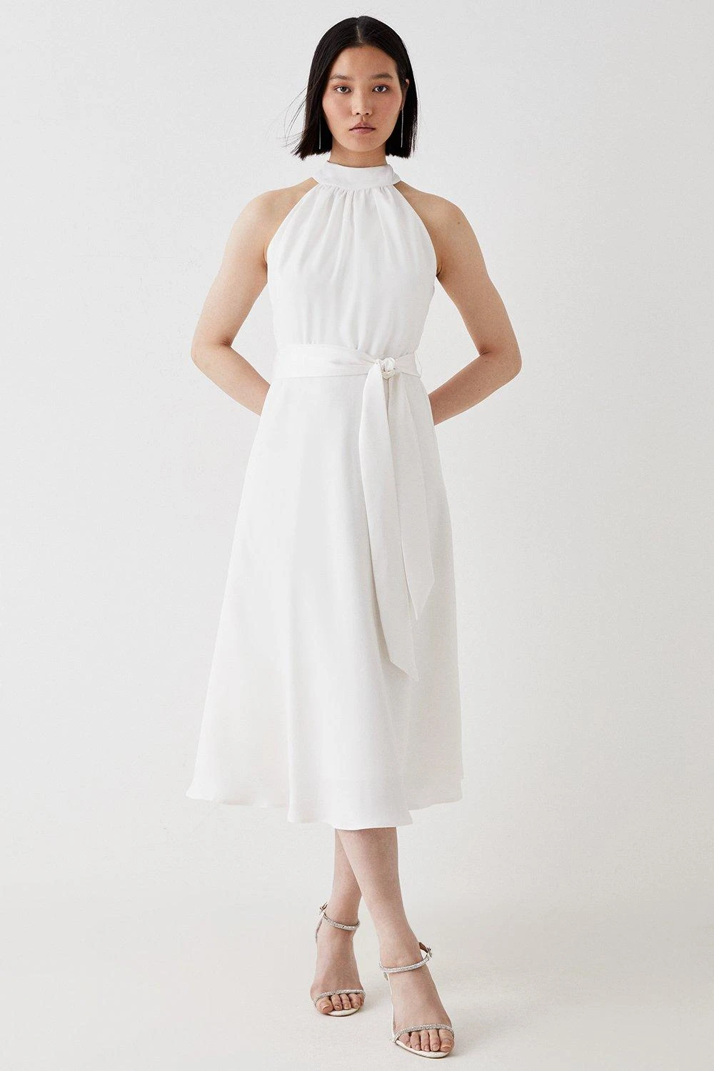 Style: Premium Halter Neck Belted Midi Dress.