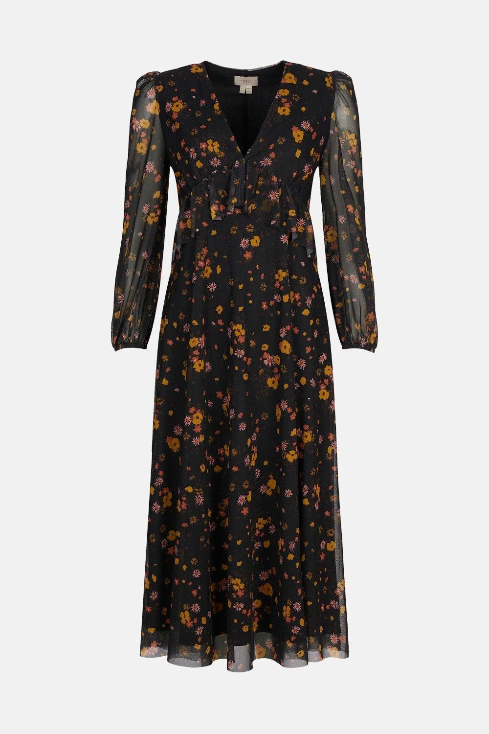 Bold prints are the new neutrals, as perfectly proven by this prettily patterned midi dress. Detailed with gently puffed sleeves and a vibrant motif, this airy design makes light work of party dressing.