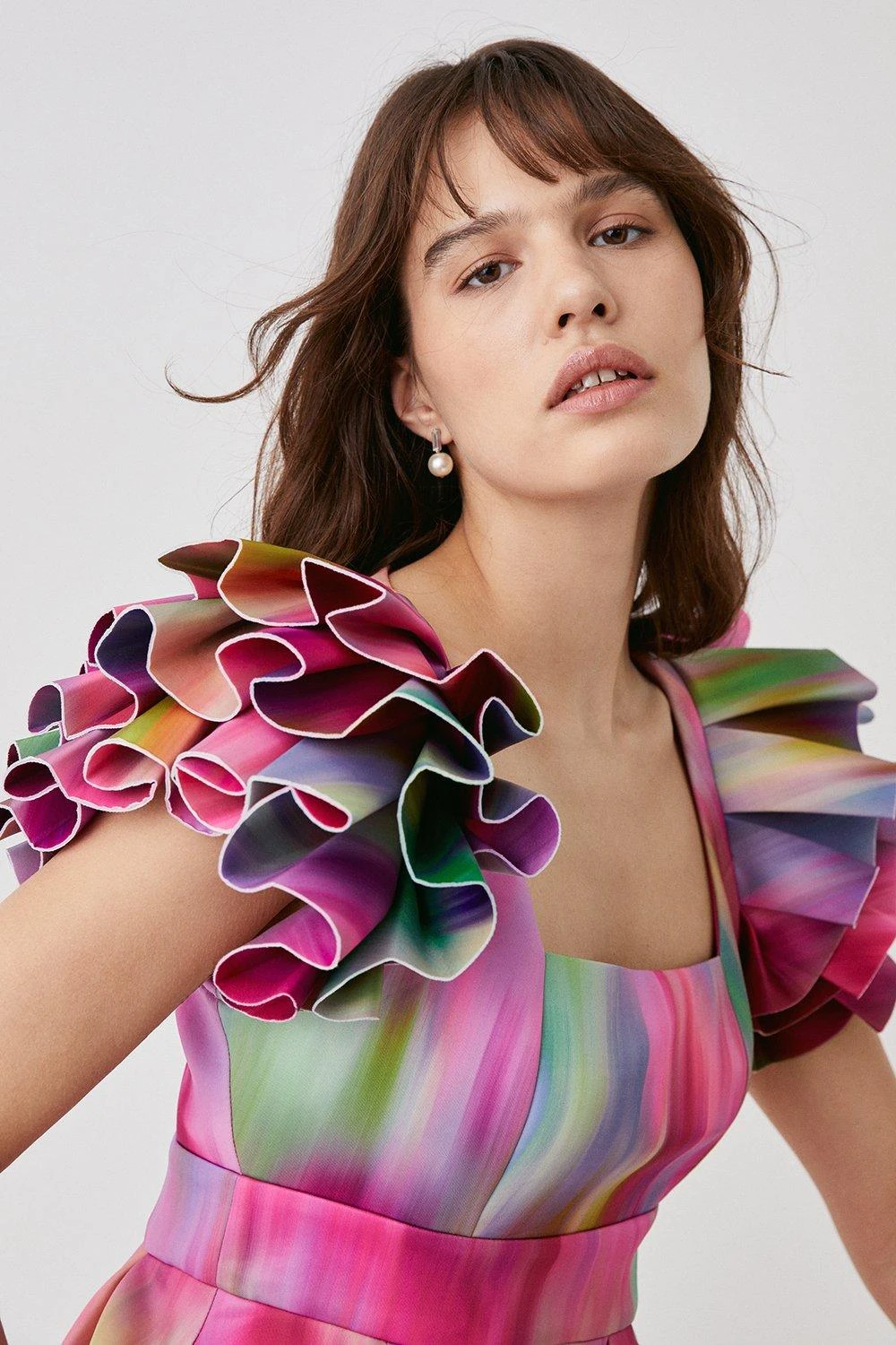 Ideal for: Daywear. Design: Ruffle. Model wears size UK 10 and is 5′ 9″ tall.
