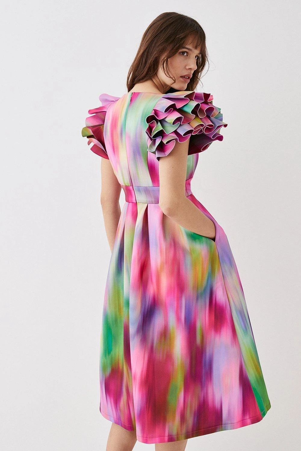 Style: Ruffle Sleeve Square Neck Midi Dress.