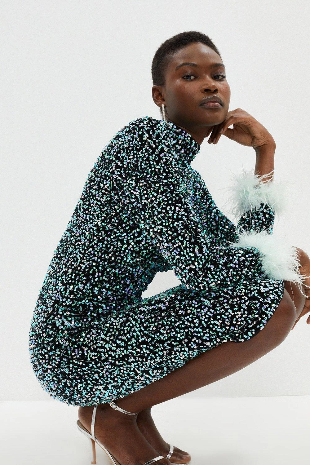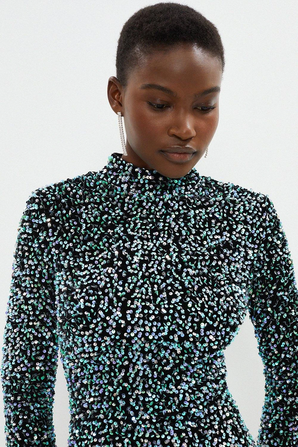 Coast Sequin Midi Dress With Feather Cuff