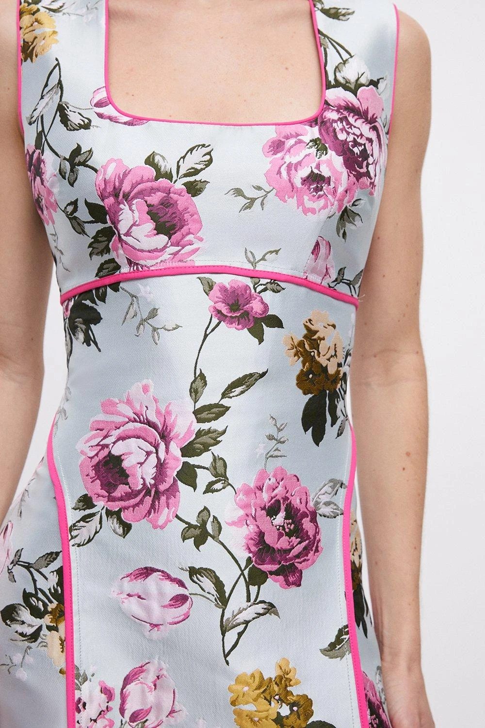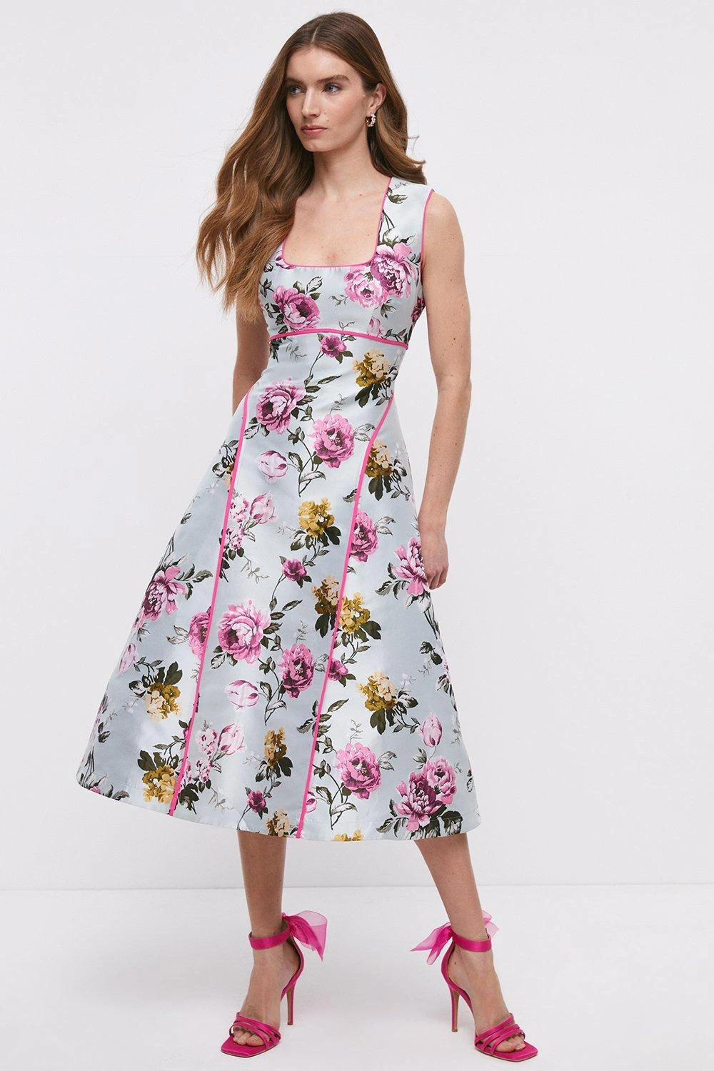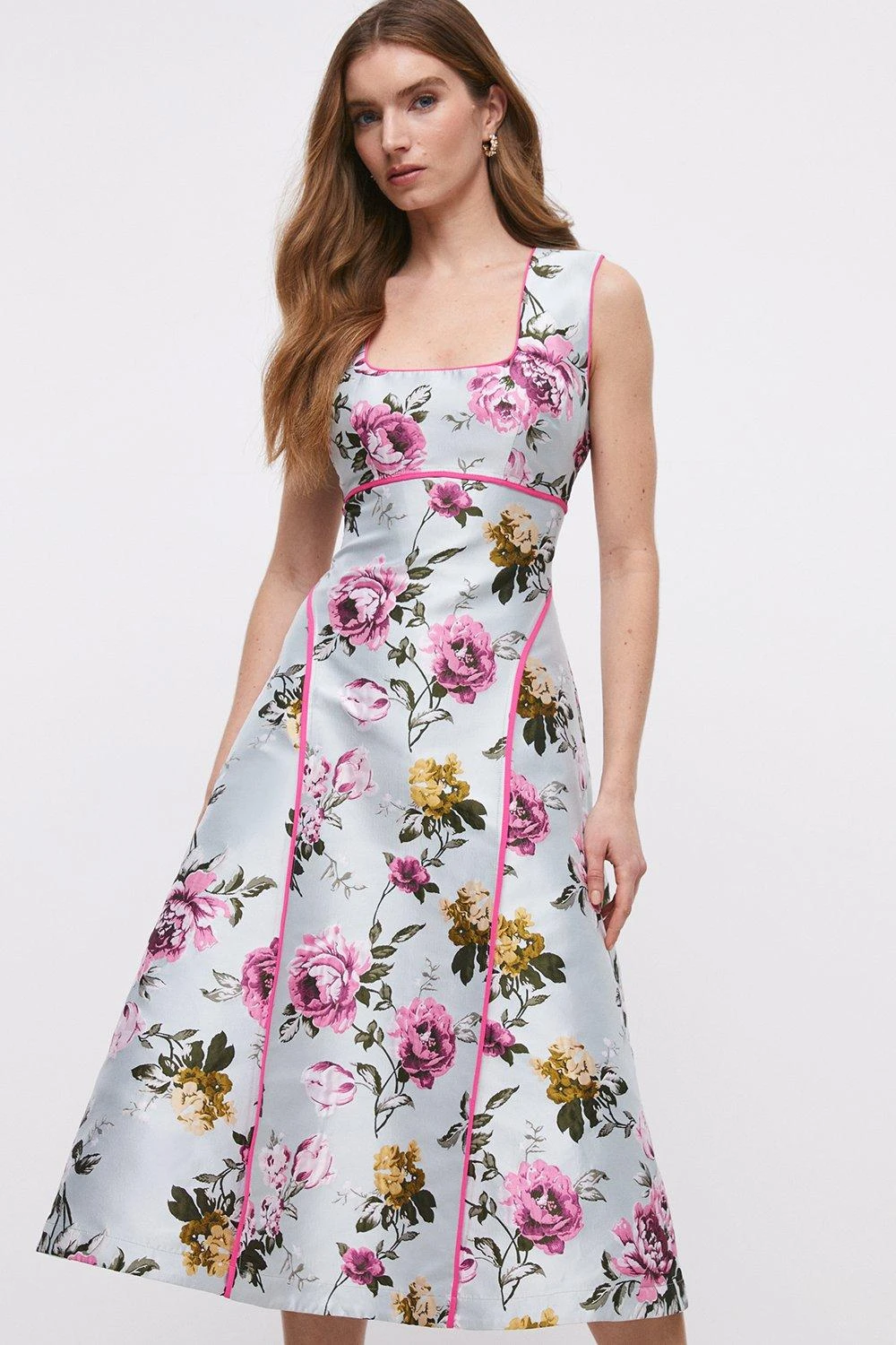 Style: Square Neck Midi Dress In Jacquard With Seam.