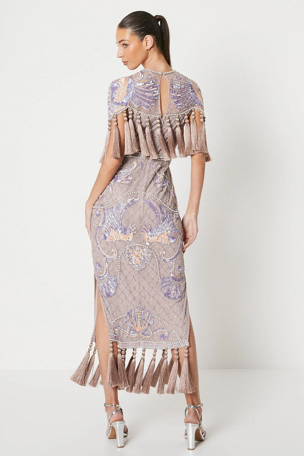 Style: The Collector Hand Embellished Midi Dress With Tassles.