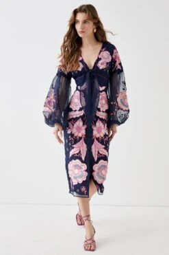 Coast Alexandra Farmer 3d Floral Structured Bodice Maxi Dress